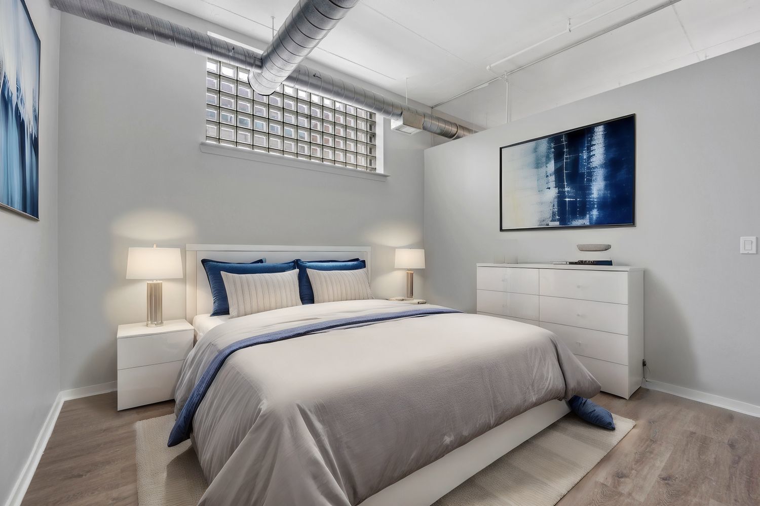 Both bedrooms of this 2-bedroom, 2-bathroom condo in the Prairie District of the South Loop are enclosed for added privacy. Featuring an open floor plan with lake views, the living/dining area boasts BRAND NEW floors, floor-to-ceiling windows, and a sliding patio door leading to an 18 ft balcony. The island kitchen showcases granite countertops with an overhang for bar stool seating and BRAND NEW stainless steel appliances. The master bedroom offers lake views and includes two large California closets. Its en-suite bathroom features ceramic tile flooring, a granite double vanity with under-mount sinks, a separate soaking tub, and a stand-alone shower with a glass enclosure. The condo also includes a laundry closet with full-size stacking washer/dryer. Conveniently located less than 1/2 mile from various transportation options, including the Red/Green CTA stop, 18th Street Metra station, and Michigan Ave #3 and #4 buses. Additionally, it offers easy access to the expressway and Lake Shore Drive (LSD), as well as close proximity to the lakefront via the 18th street bridge and the Mariano's on 16th and Clark. Building amenities include a gym and bike storage, with indoor heated garage parking available for $200- large spot.