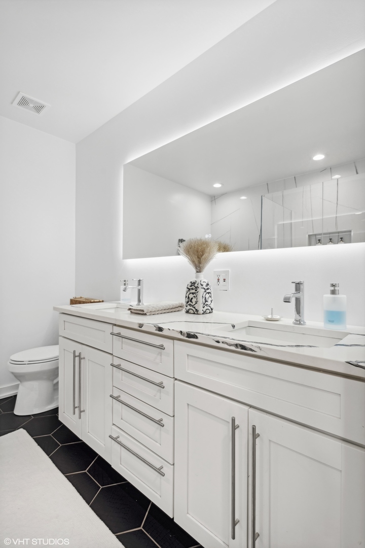 Welcome to this unique style 2 bedroom, 2.5 bath duplex up condo equipped with a 1,000 plus SQFT roof deck located in prime area of Wicker Park. This unit features uniform white oak hardwood floors through out, half bath located on the main level which is perfect for guests, abundant storage with a coat closet and walk in pantry, massive roof top deck located off of the main living space area with both water and gas hook ups. This unit is located on the South side of the building which gives you an abundance of natural light. The primary bath has been completely remodeled, with a curb less shower, all Kohler fixtures, a double sink vanity with quartz counter top. Very spacious primary bedroom, with a full luxury built out walk in closet. Brand new casement windows have been installed throughout the entire unit. 1 attached garage spot included, plus additional room for your storage needs. Again this unit is located on the South side of the building, avoiding any noise from Division street but still allows you convenient access to Division Street to enjoy all the shopping, top restaurant and bars Wicker Park has to offer.