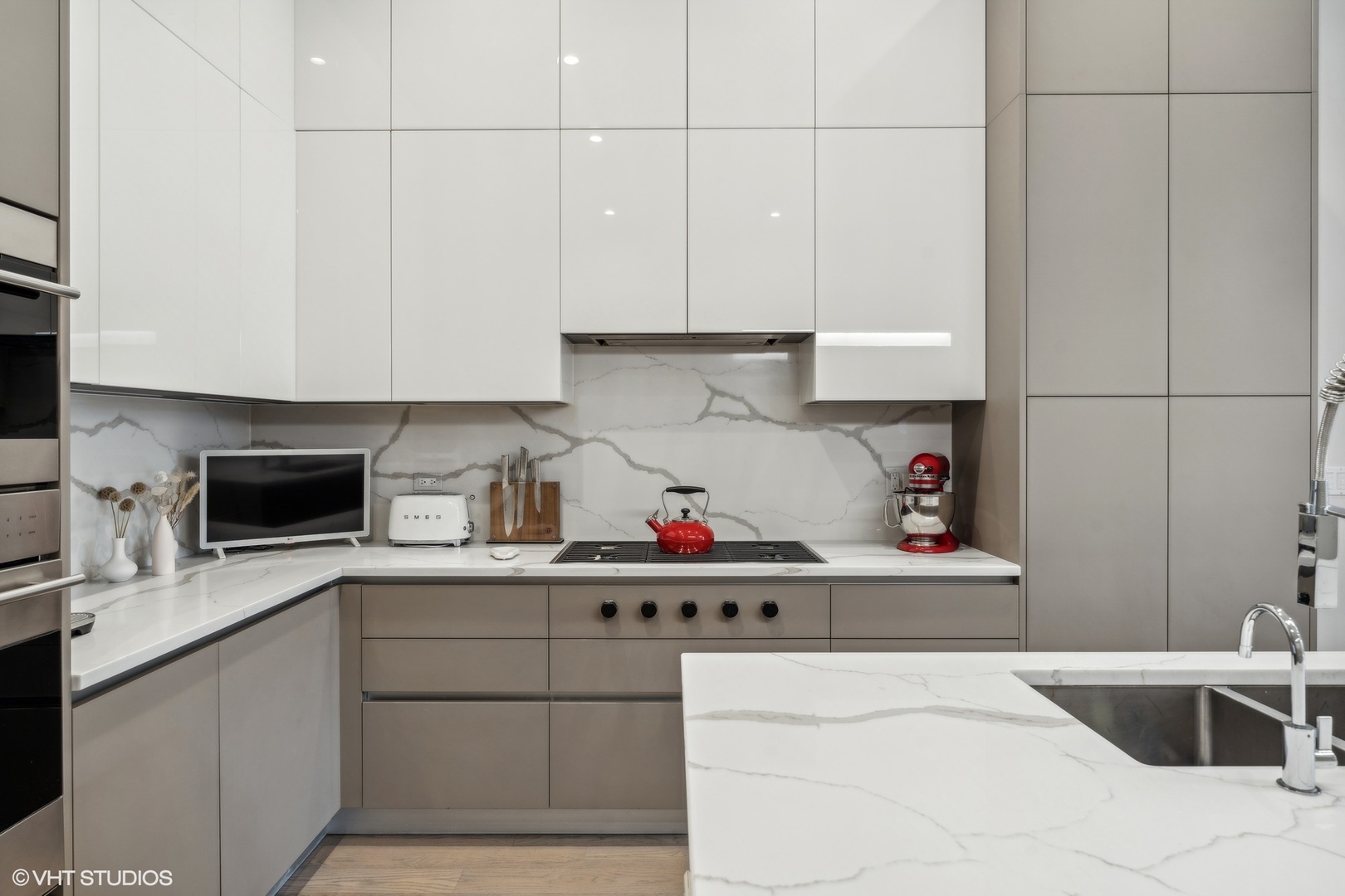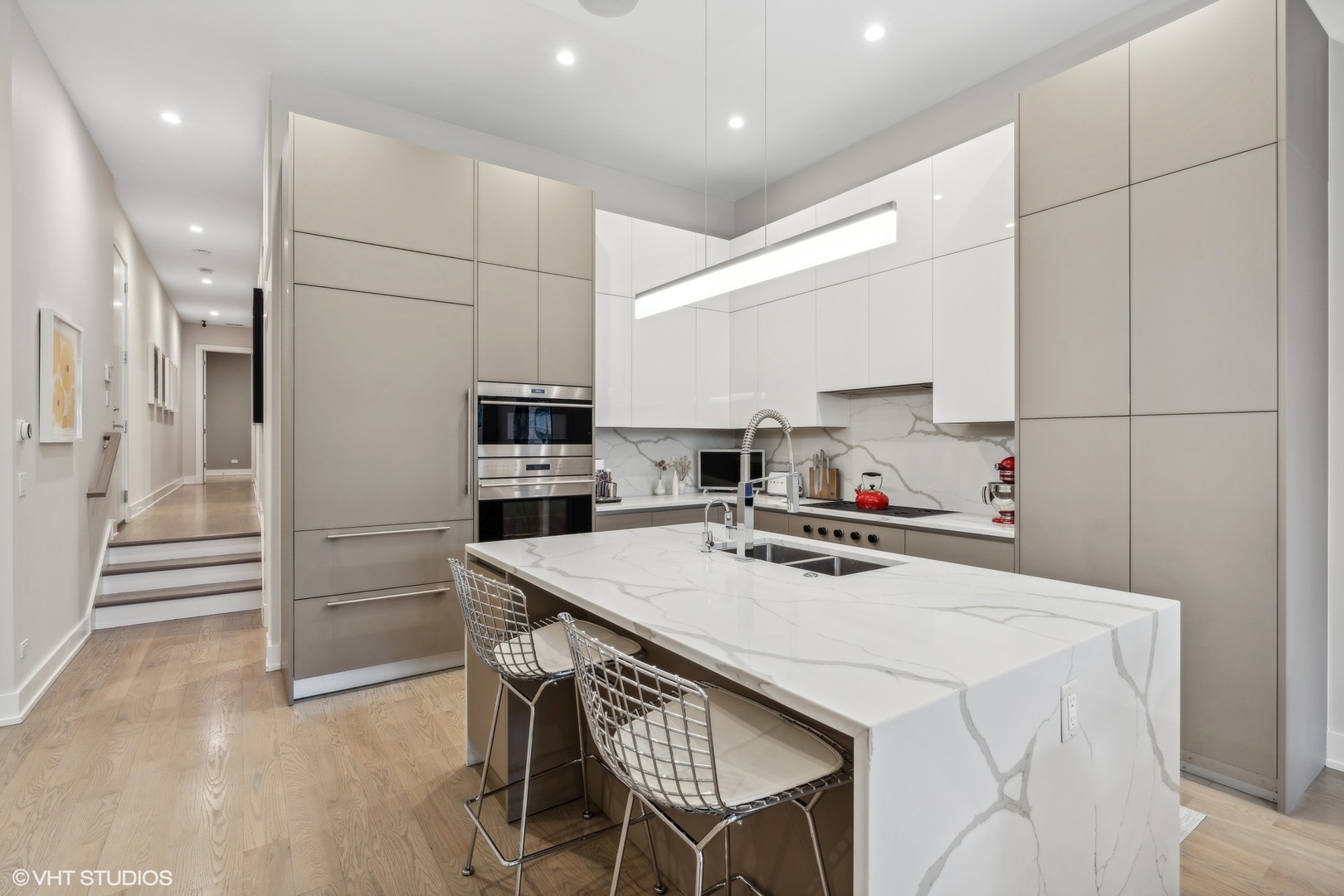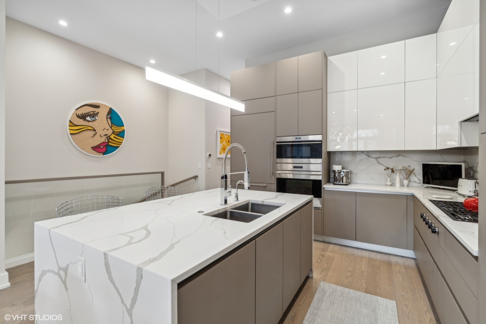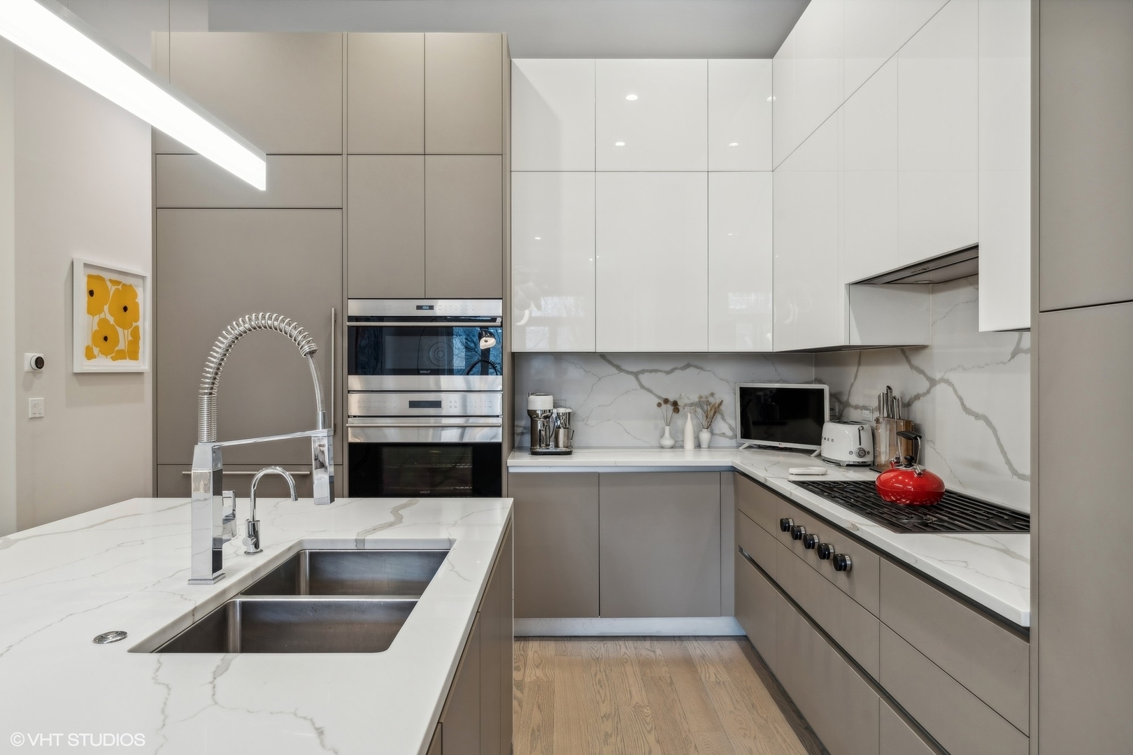Welcome to the prestigious West Loop Collection located in the heart of Chicago's West Loop neighborhood. This rarely available duplex down is part of a uniquely constructed elevator building consisting of 8 total units. A true single family feel allows you to step outside to enjoy all the best restaurants, parks, and shops Chicago has to offer. This luxury unit is outfitted with custom Italian cabinetry by Copat, Bosch, Wolf, and Sub Zero appliances, 5" wide plank oak flooring, and soaring 12 ft coffered ceilings. This one of a kind unit has a total of 4 bedrooms, 3 full baths, 2 large family rooms, 2 outdoor spaces, walk in laundry room and pantry along with a fully equipped wet bar. Exclusive private deck gives you that outdoor space you need with a fully serviceable outdoor kitchen, and is conveniently covered for you to enjoy at all times. Oversized parking space with electrical carport installed. Nothing more to do here but move in and enjoy.