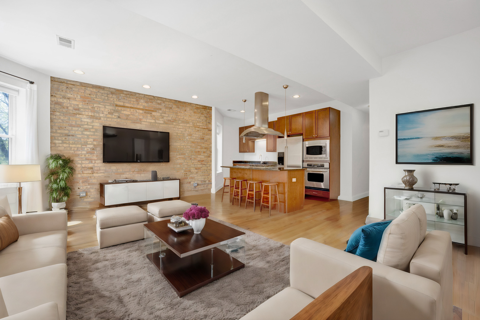 This updated 2-bedroom, 1-bathroom condo in prime Wrigleyville features a sunlit open floor plan with exposed brick walls and hardwood floors throughout. The kitchen boasts cherry cabinets, granite countertops, and stainless steel appliances. Bedrooms are spacious and situated across from a bathroom with a double vanity sink and shower/tub combo. The large back deck is perfect for outdoor furniture and a grill. Additional amenities include tandem 2-car parking and an in-unit washer and dryer. Conveniently located steps away from Wrigley Field, public transportation, shopping, and more.