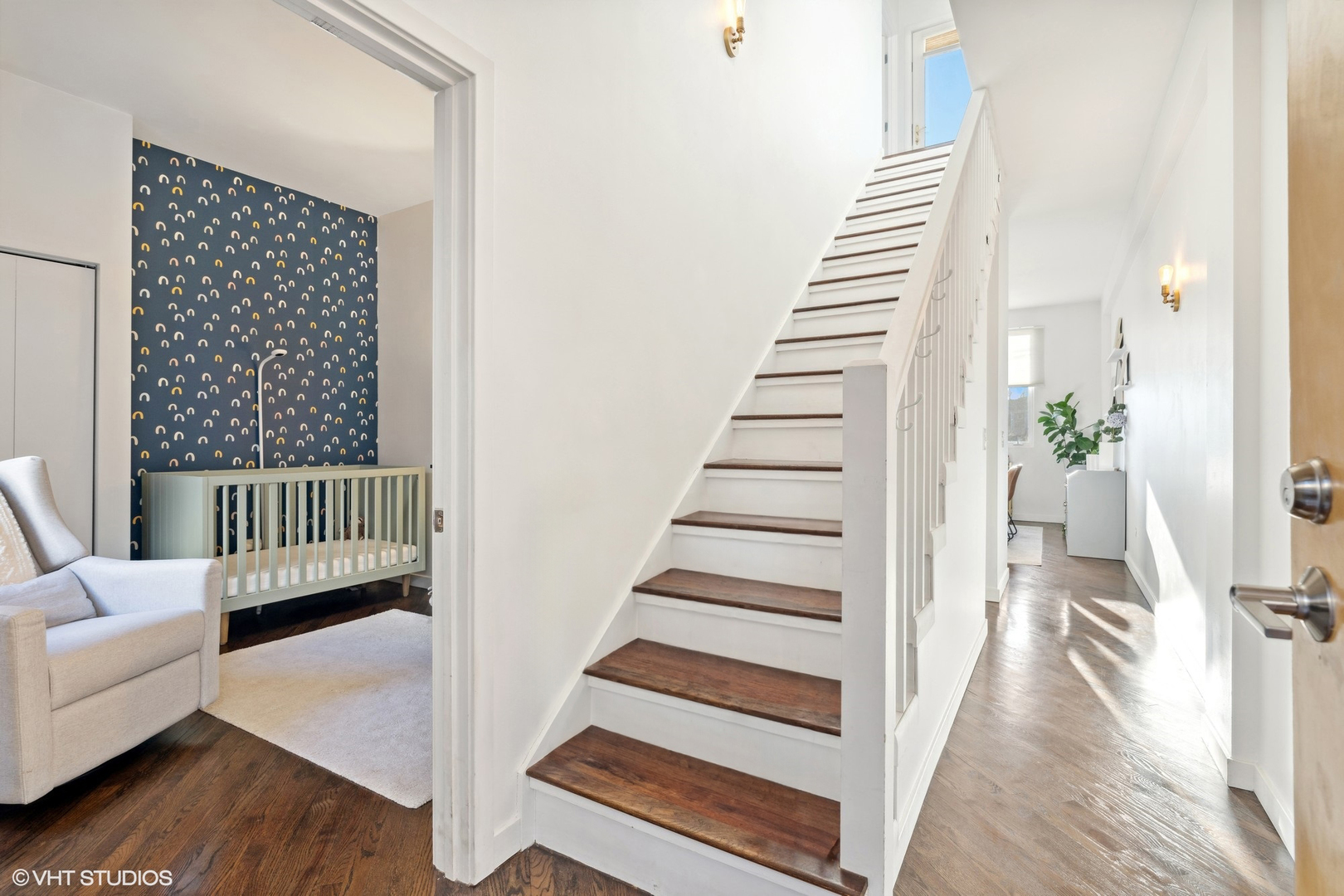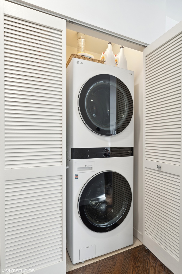 FIRST SHOWINGS ONLY SAT 2-4pm. Enjoy top floor sunset views from this 2 bedroom, 2 bath duplex up condo sitting on the back side of elevator building facing West in coveted Coonley School district. Nearly every single thing has been updated in the condo from a remodeled kitchen with new Appliances, Washer Dryer, AC, Furnace, and Hot Water Heater (see property info sheet). The main level boasts spacious open level floor plan with diagonal espresso hardwood floors throughout, floor to ceiling windows, bedroom, full bath, dining room and living room with gas lit fireplace. Kitchen with custom cabinets, mosaic back splash and stainless steel appliances. Top floor master suite has walk in organized closet plus bathroom with separate soaking tub/shower and double sinks. Walk out to private balcony overlooking tree lined residential streets. ATTACHED garage parking included in price. Butterfly security/video entry system for the building. Steps to restaurants, shopping, six corners. Blocks to Irving Park Brown line stop. Offers due by Sat 8pm. Decisions by Sun 12pm.